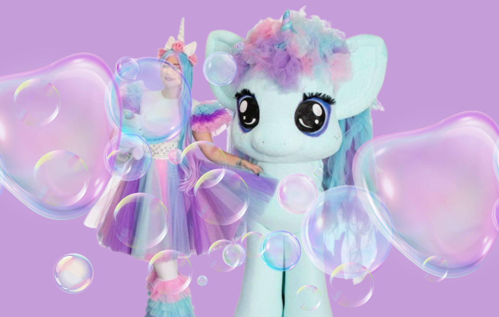 А для тех, кто по старше мы покажем шоу мыльных пузырей с единорожкой!